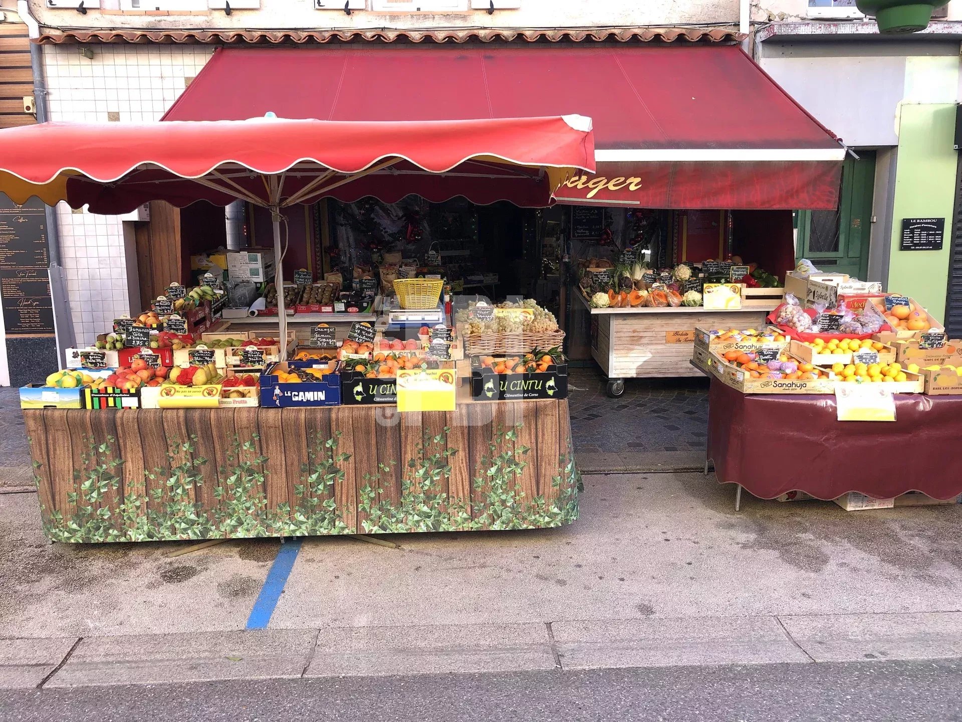 Un local de 50m² environ en excellent état, composé d’un espace de vente, une arrière boutique, une chambre froide, en plus une autorisation d’utilisation du trottoir pour exposer les produits ce qui permet d’augmenter la surface de vente.